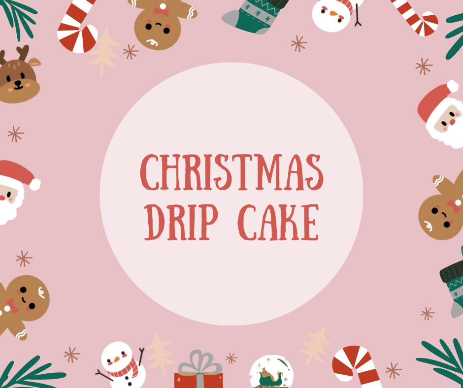 6″, tall drip cake with festive buttercream piping, sprinkles and a Christmas topper.